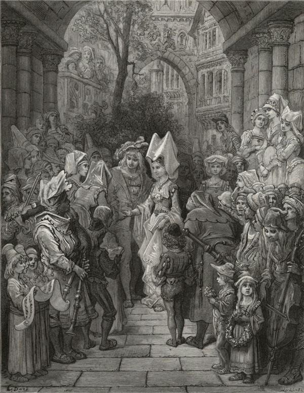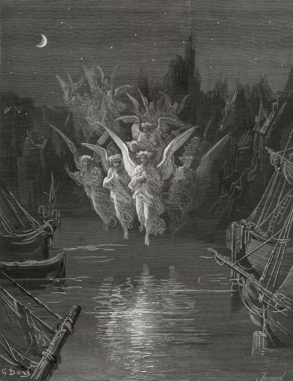 The following are selected illustrations by Gustav Doré from the 1876 edition, with one illustration by Mervyn Peake.