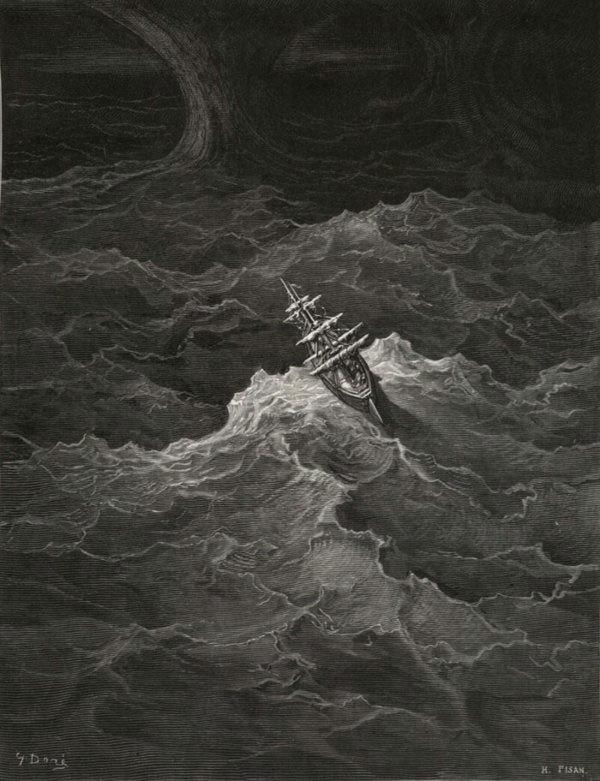 And now the STORM-BLAST came, and he Was tyrannous and strong: He struck with his o’ertaking wings, And chased us south along.