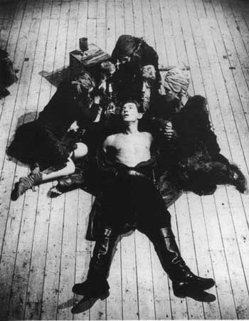 An actor came out, thin with long black hair falling about his coiled shoulders.
